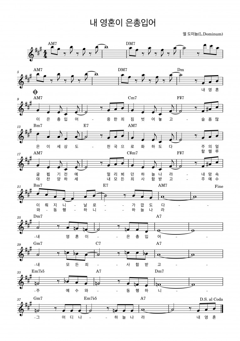 [악보] 내 영혼이 은총입어 - L. Dominum (LoudateDominum 라우데테 도미늄: 하나님을 찬양하라)
