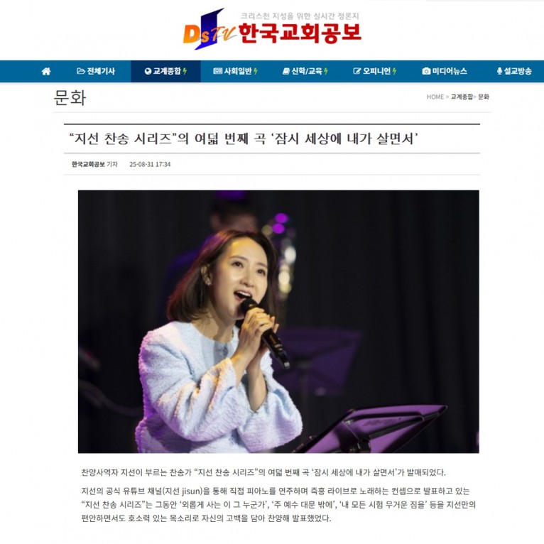 뮤직타임 [기사] “지선 찬송 시리즈”의 여덟 번째 곡 ‘잠시 세상에 내가 살면서’(한국교회공보)