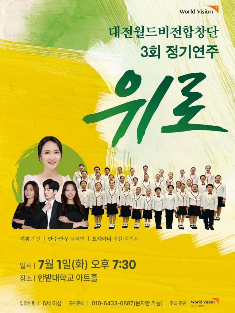 월드비전이 주관하는 이번 공연은 ‘위로’라는 주제로 7월 1일 저녁 7시 30분, 한밭대학교 아트홀에서 열릴 예정이며, 지선의 지휘와 함께 남혜민이 반주와 안무, 최설과 김지은이 트레이너를 맡았다.