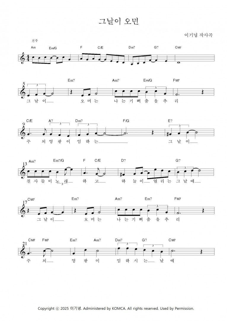 뮤직타임 [악보] 그날이 오면 - 창조의 목적 (잠잠히 주를 바랄 때)