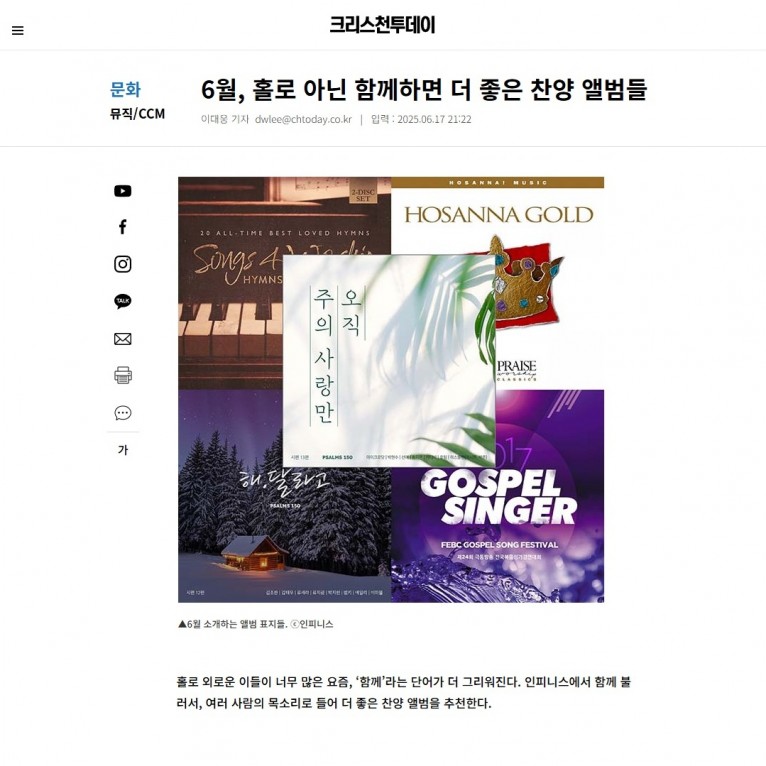 [기획기사] 홀로 아닌 함께하면 더 좋은 찬양 앨범들(크리스천투데이)