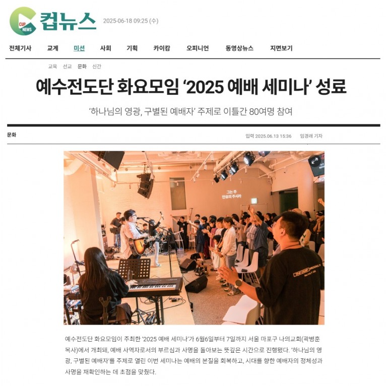 뮤직타임 [기사] 예수전도단 화요모임 ‘2025 예배 세미나’ 성료(크리스챤연합신문)