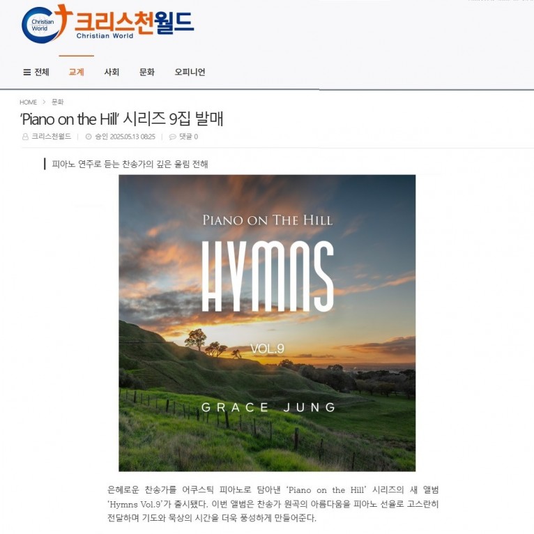 [기사] ‘Piano on the Hill’ 시리즈 9집 발매(크리스천월드)