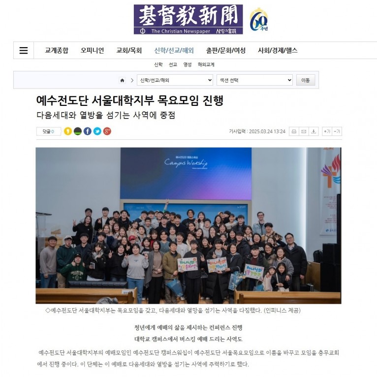 [기사] 예수전도단 서울대학지부 목요모임 진행(기독교신문)