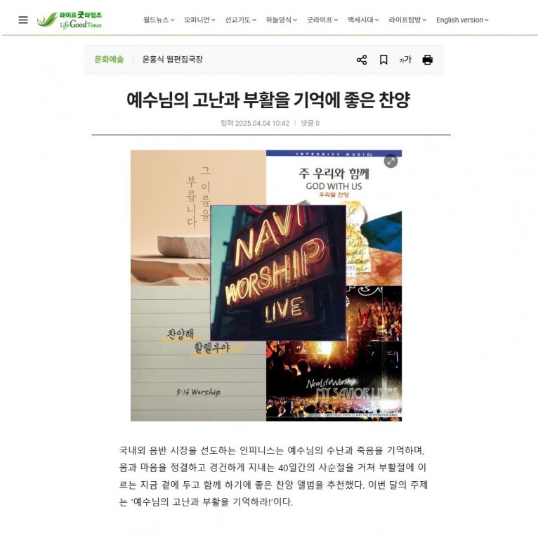 뮤직타임 [기획기사] 예수님의 고난과 부활을 기억에 좋은 찬양(라이프굿타임즈)