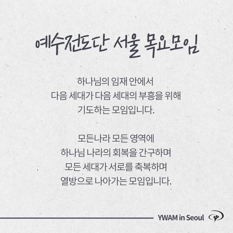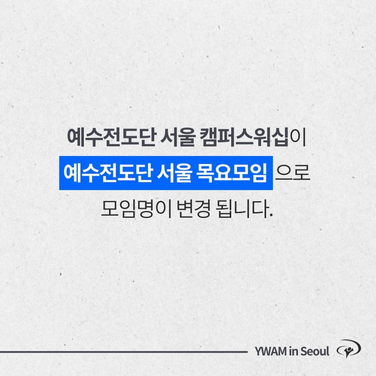 서울대학지부는 곧 이름이 바뀝니다. 특별히 다음세대와 선교, 확장과 연결이라는 키워드를 가지고 지부가 변화하고 있습니다.