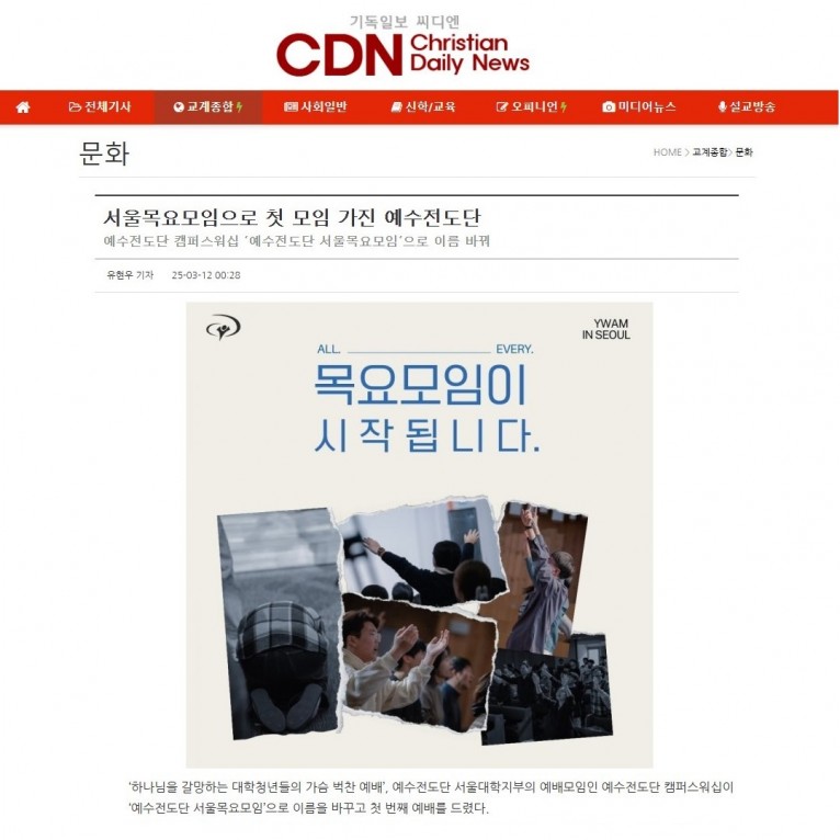 뮤직타임 [기사] 서울목요모임으로 첫 모임 가진 예수전도단(기독일보 씨디엔)