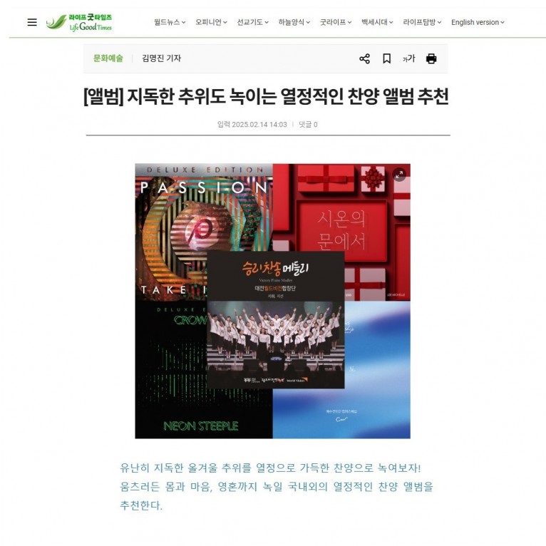 뮤직타임 [기획기사] 지독한 추위도 녹이는 열정적인 찬양 앨범 추천(라이프굿타임즈)