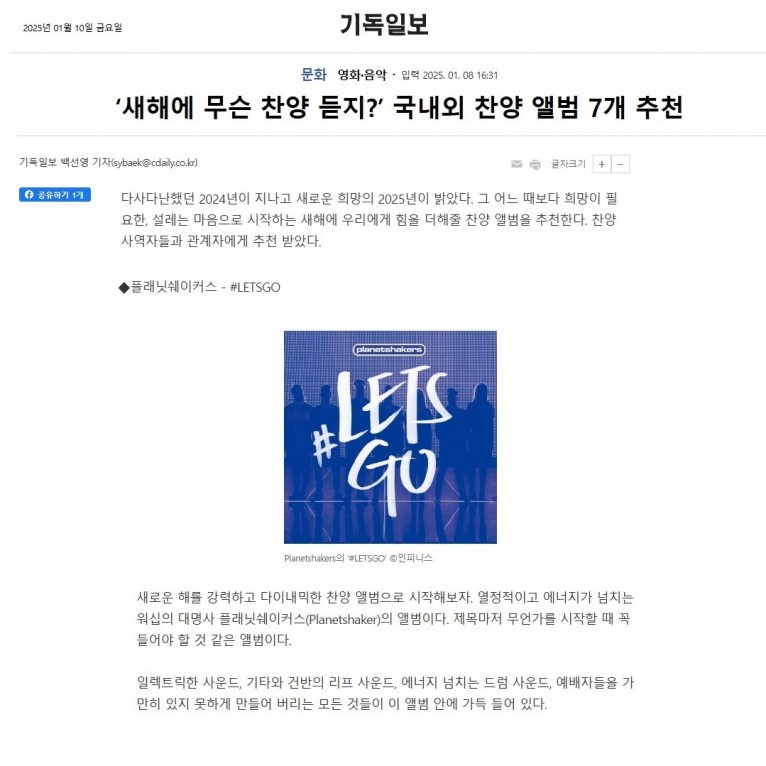 뮤직타임 [기획기사] ‘새해에 무슨 찬양 듣지’ 국내외 찬양 앨범 7개 추천(기독일보)