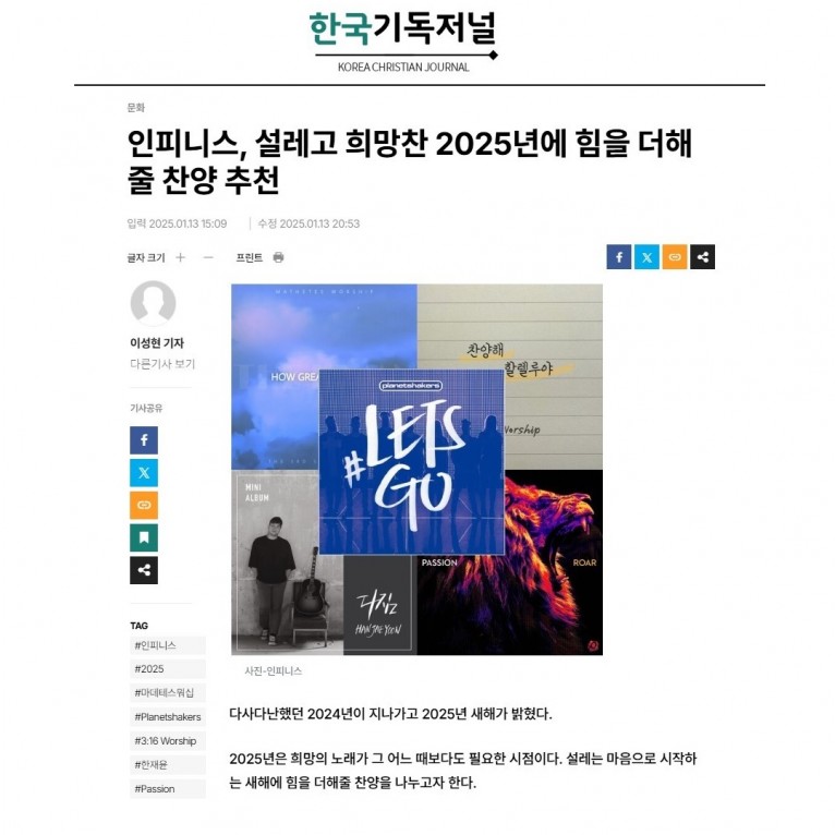 뮤직타임 [기획기사] 설레고 희망찬 2025년에 힘을 더해 줄 찬양 추천(한국기독저널)