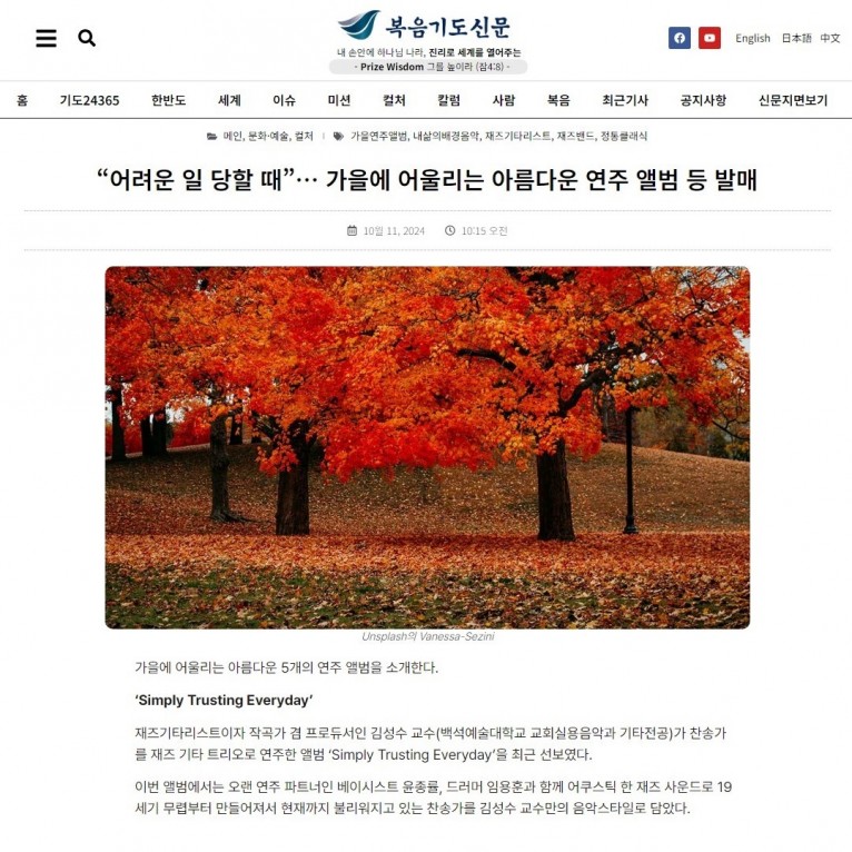 [기획기사] “어려운 일 당할 때”… 가을에 어울리는 아름다운 연주 앨범 등 발매(복음기도신문)