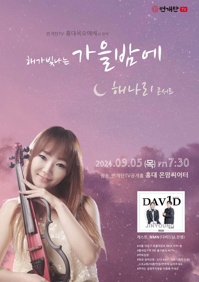 뮤직타임 [공연] 번개탄TV 홍대목요예배와 함께 해가 빛나는 가을밤에 해나리 콘서트