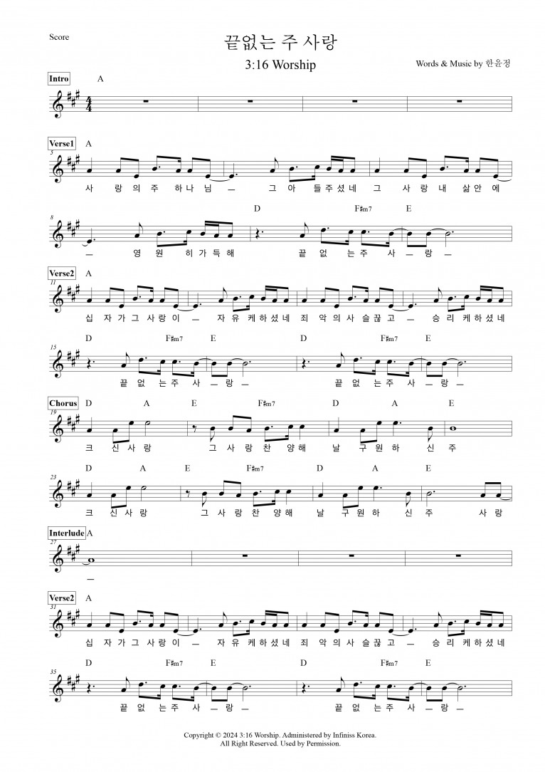 [악보 & MV] 끝없는 주 사랑 - 3:16 Worship