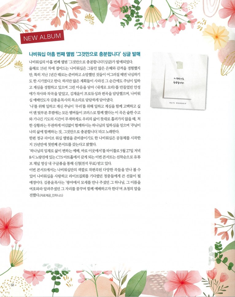 뮤직타임 [잡지] New Album_ 그것만으로 충분합니다 (싱글) 등 2편(월간 Church Media 2024.6월호)
