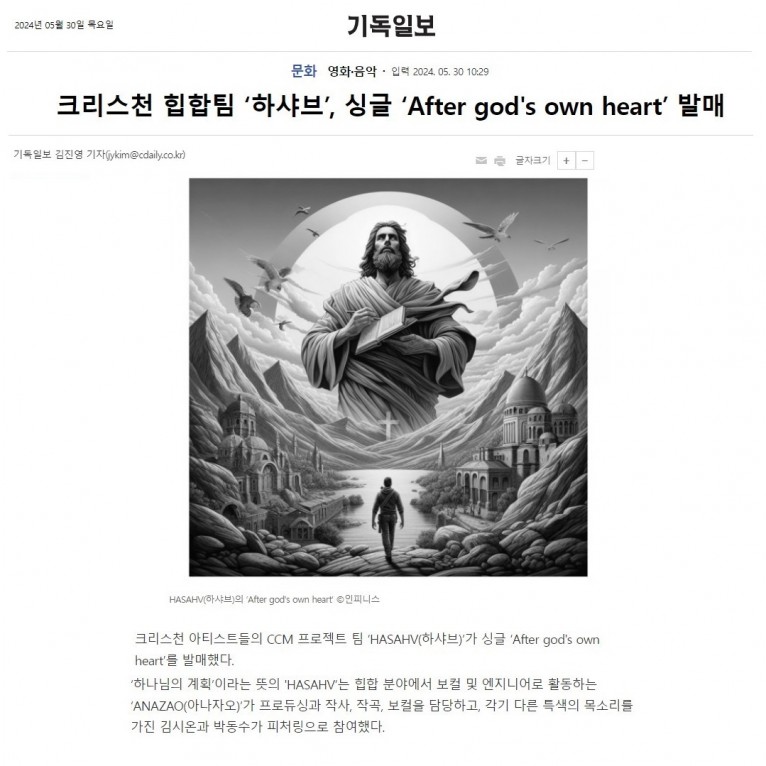 [기사] 크리스천 힙합팀 ‘하샤브’, 싱글 ‘After god's own heart’ 발매(기독일보)
