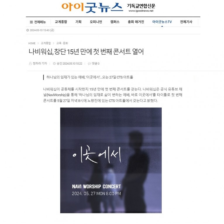 뮤직타임 [기사] 나비워십, 창단 15년 만에 첫 번째 콘서트 열어(아이굿뉴스)