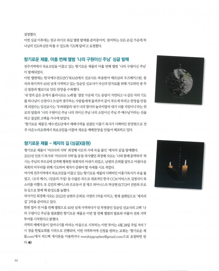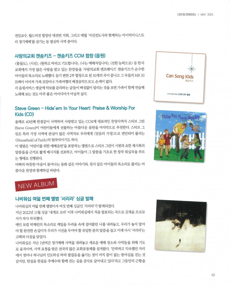 [잡지] New Album_ 나비워십 - 서리라 (싱글) 등 3편(월간 Church Media 2024.5월호)