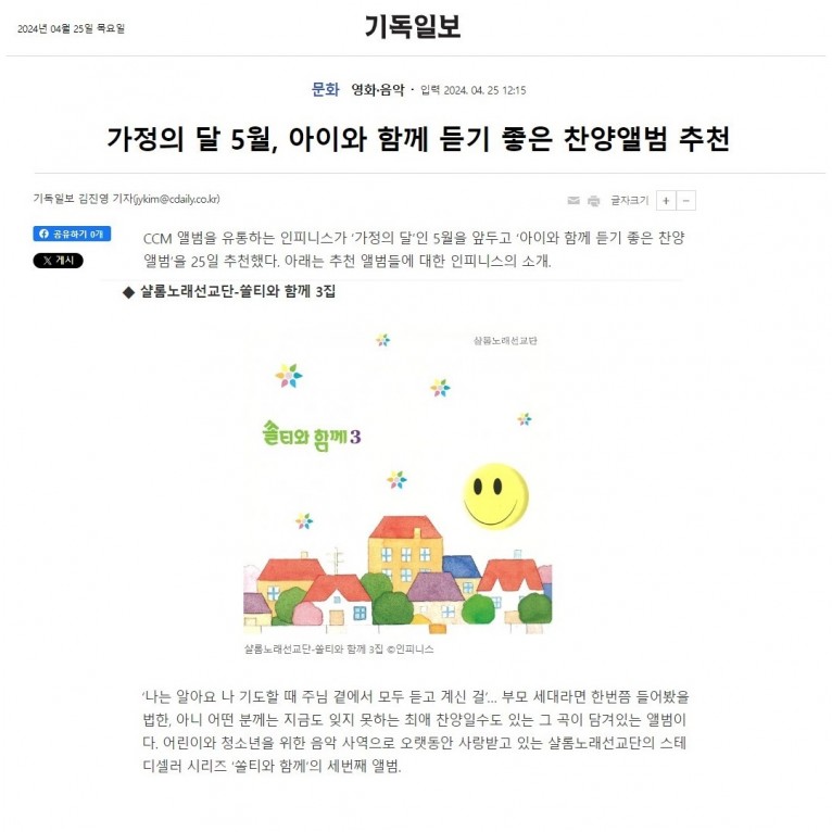 뮤직타임 [기획기사] 가정의 달 5월, 아이와 함께 듣기 좋은 찬양앨범 추천(기독일보)