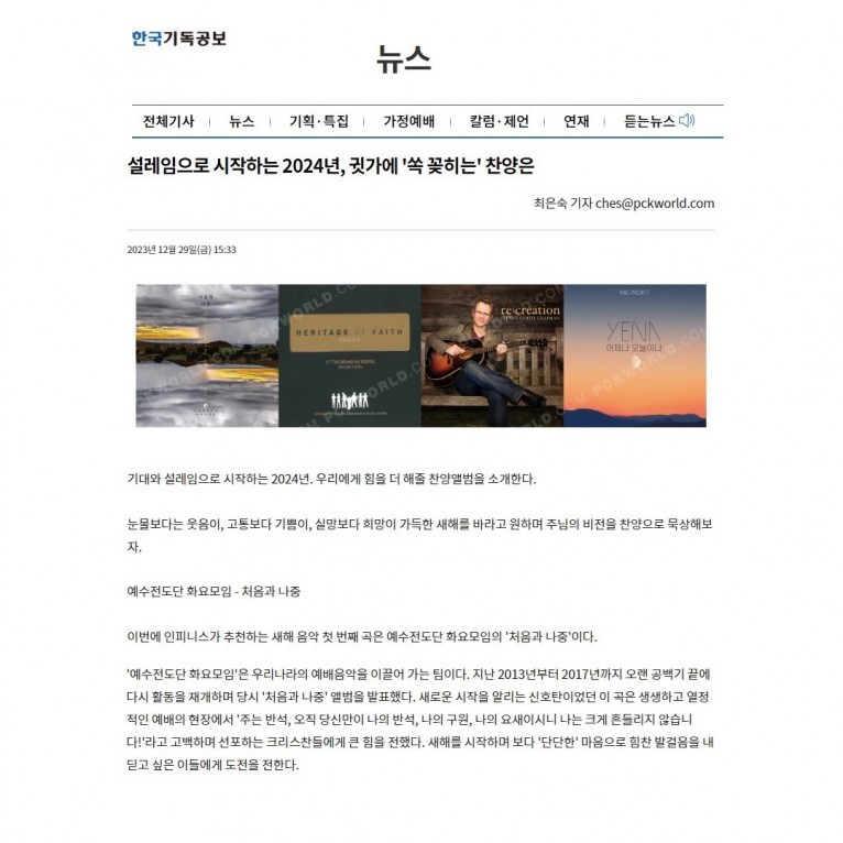 [기획기사] 설레임으로 시작하는 2024년, 귓가에 '쏙 꽂히는' 찬양은(한국기독공보)
