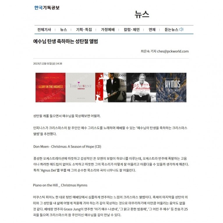 뮤직타임 [기획기사] 예수님 탄생 축하하는 성탄절 앨범(한국기독공보)