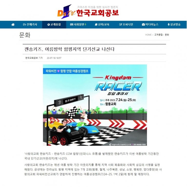 [기사] 캔송키즈, 여름방학 함평지역 단기선교 나선다(한국교회공보)