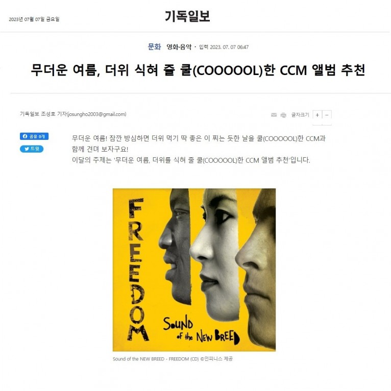 [기사] 무더운 여름, 더위 식혀 줄 쿨(COOOOOL)한 CCM 앨범 추천(기독일보)