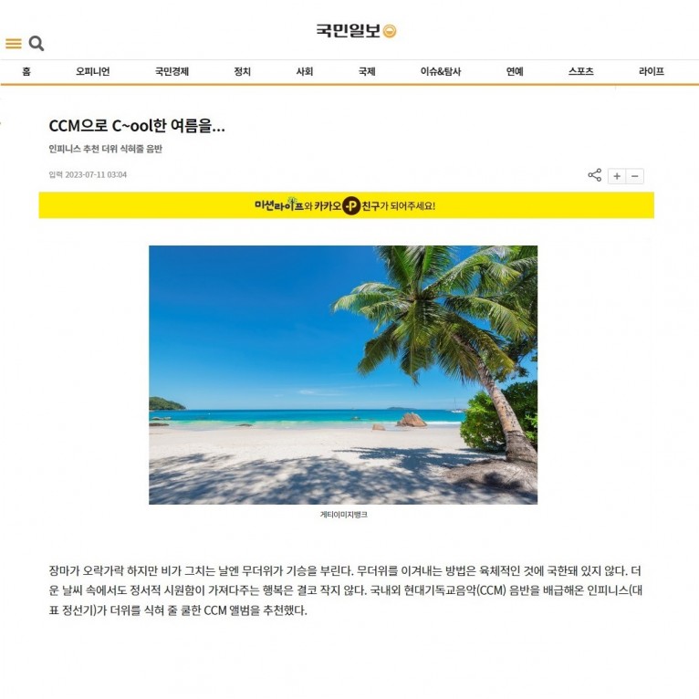 [기사] CCM으로 C~ool한 여름을…(국민일보)