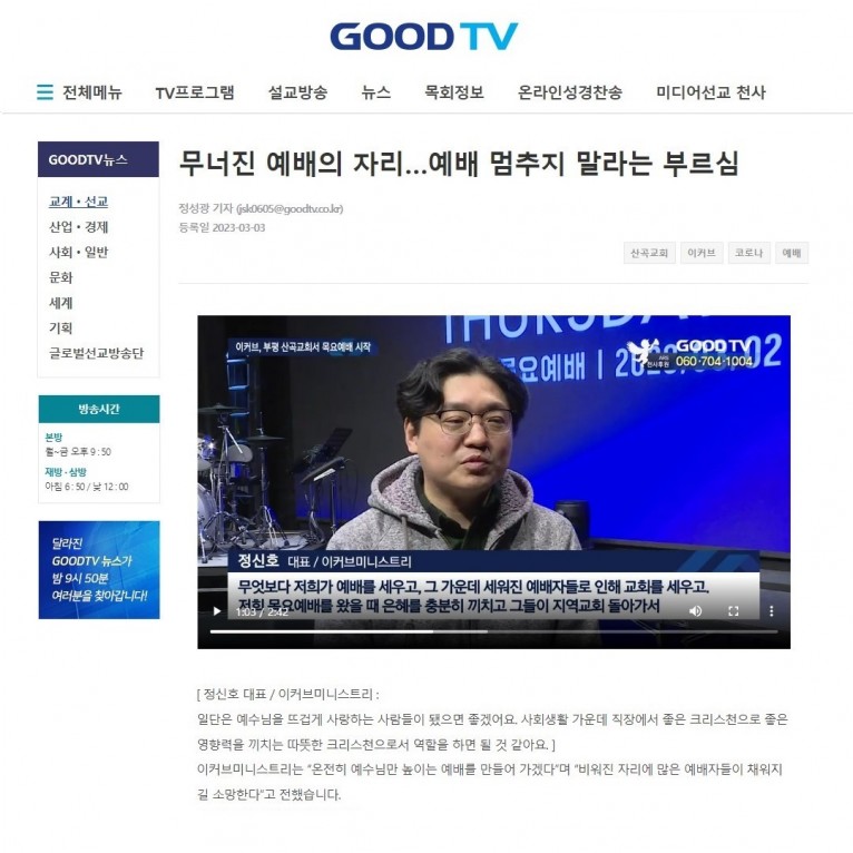[보도] 무너진 예배의 자리…예배 멈추지 말라는 부르심(GOOD TV)
