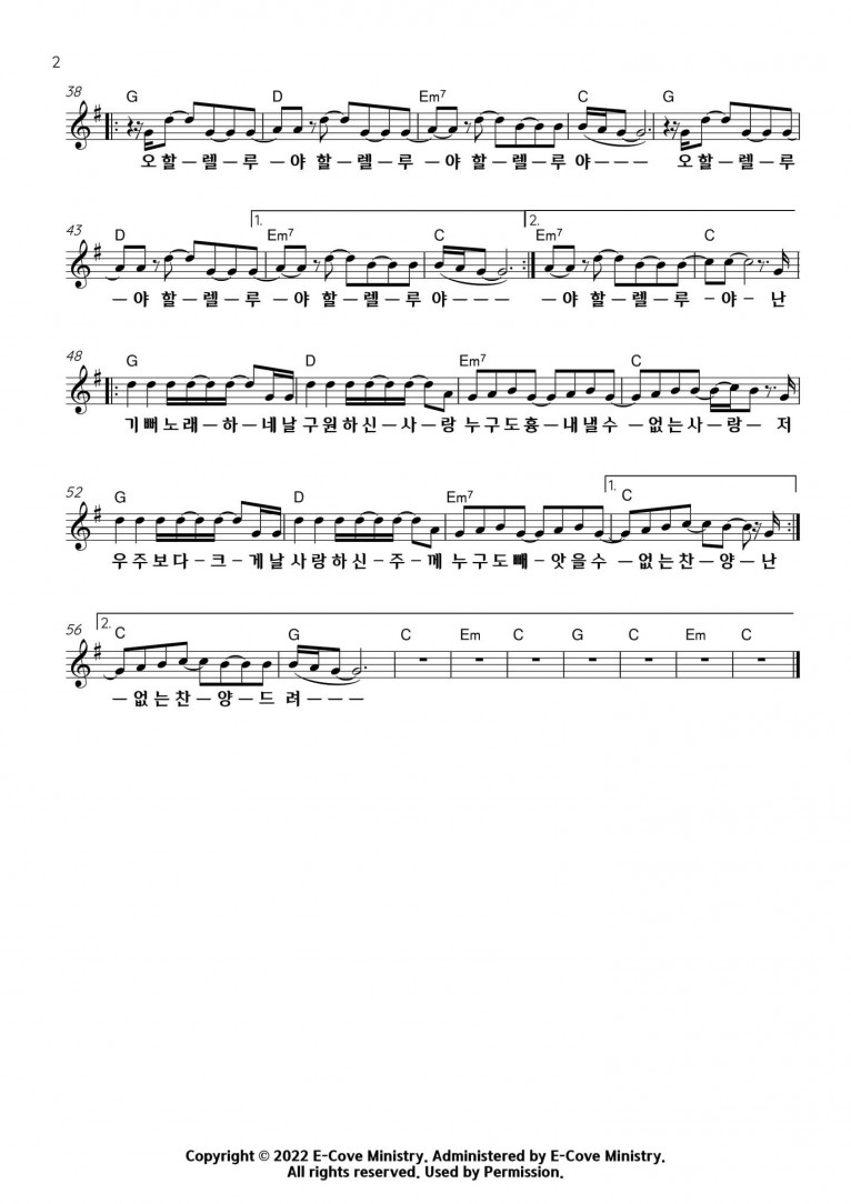 [악보] 난 기뻐 노래하네 - E-Cove Ministry (이커브미니스트리)