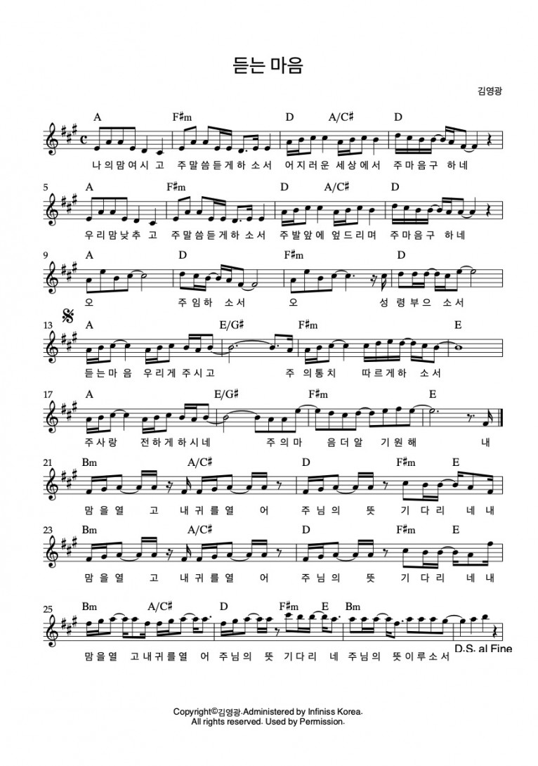 뮤직타임 [악보] 듣는 마음 - 김영광 (예수의 사랑이) (EP)(음원)