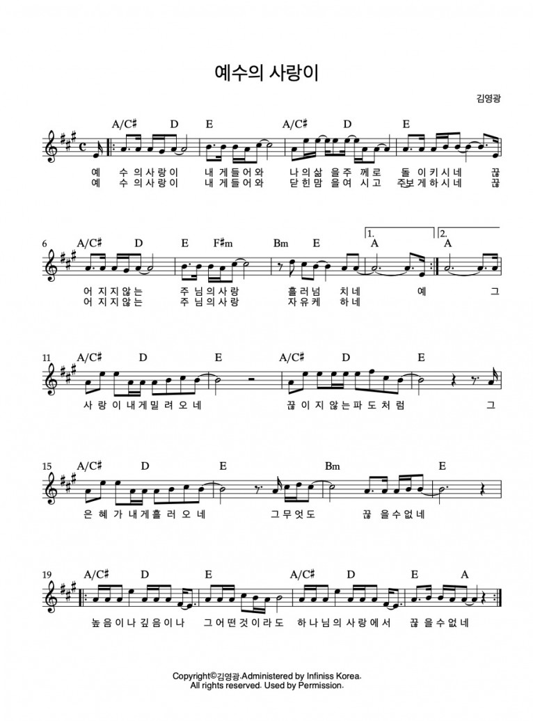 뮤직타임 [악보] 예수의 사랑이 - 김영광 (예수의 사랑이) (EP)(음원)