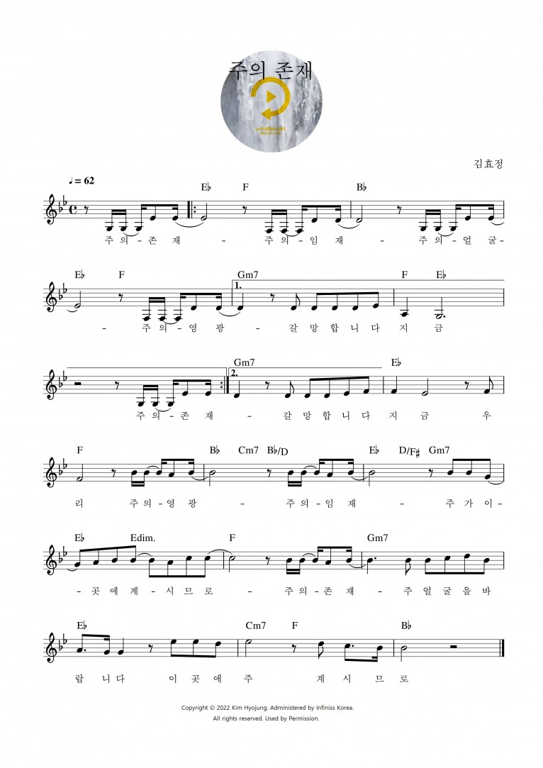 뮤직타임 [악보] 주의 존재 - 김효정 (2nd Hallelu:jah!)