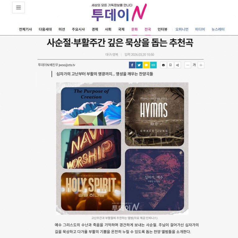 [기획기사] 사순절·부활주간 깊은 묵상을 돕는 추천곡(기독교텔레비전 투데이N)