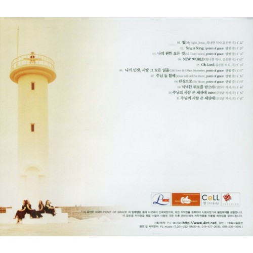 1. 빛 (My light, Jesus) 2. Sing a Song (point of grace 앨범중) 3. 나의 원한 모든 것 (All That I need_point of grace 앨범중) 4. NEW WORLD 5. Oh Lord 6. 나의 인생, 사랑 그 모든 일들 (Life love & Other Mysteries_point of grace 앨범중) 7. 주님 늘 함께 계셔 (jesus will still be there_point of grace 앨범중) 8. 전심으로 (By Heart_point of grace 앨범중) 9. 넉넉한 위로를 받으라 10. 주님의 사랑 온 세상에 intro 11. 주님의 사랑 온 세상에